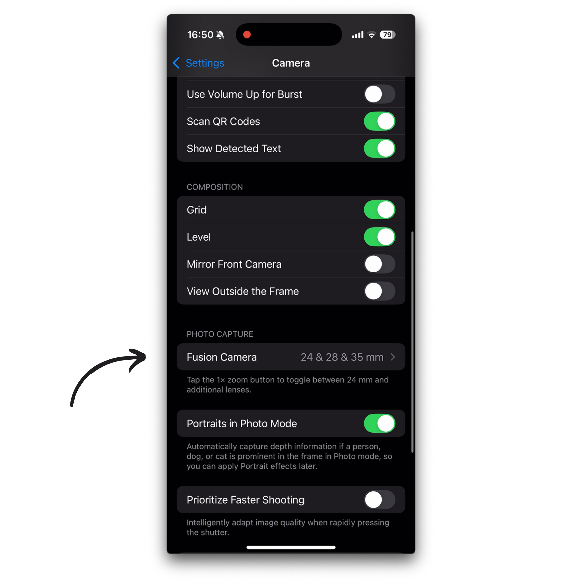Fusion camera I believe is a new feature on the iPhone 16 Pro letting you ‘add’ 2 more focal lengths. The truth is that they are just crops into the main 24mm equivalent 1x lens. I still like to use them to help me composing. I use 35mm a lot on my Sony camera so having access to it is quite useful. One thing to be aware of is that you cannot revert it in post. A photo taken at 35mm cannot be reverted to the full 24mm file.